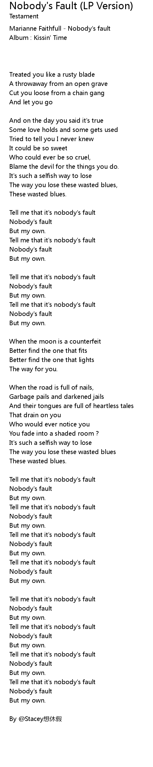 | Marianne Faithfull - Nobody's fault | |