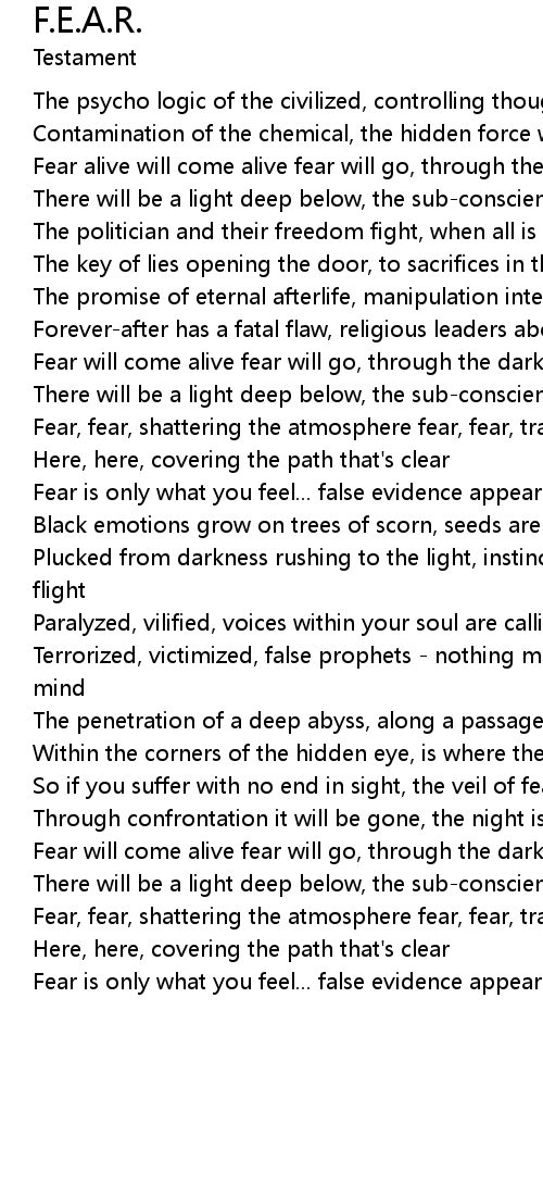 Fear alive will come alive fear will go, through the darkness and the woes |
