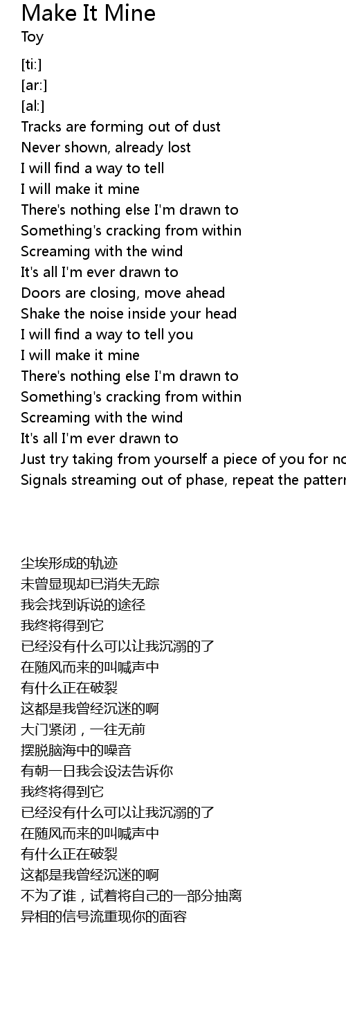 | [03:01.71] | Signals streaming out of phase, repeat the patterns on your face |