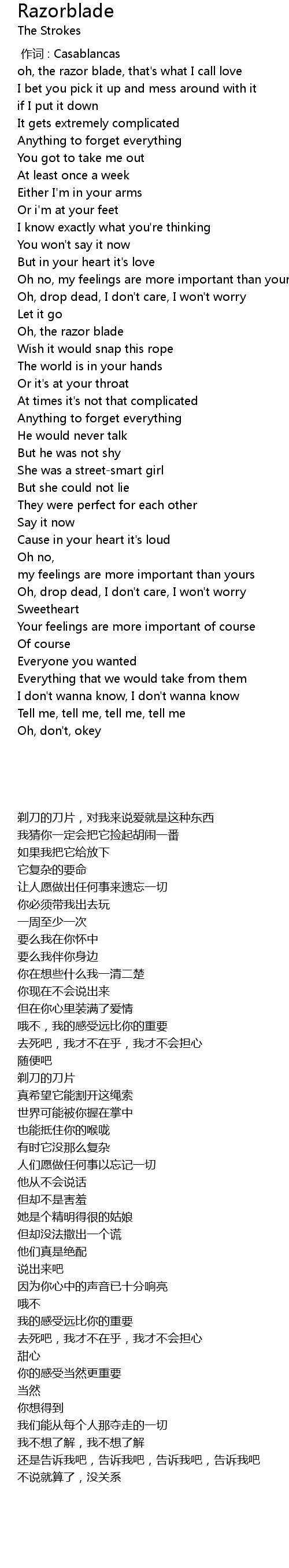 | [00:00.00] | 作词 : Casablancas |
