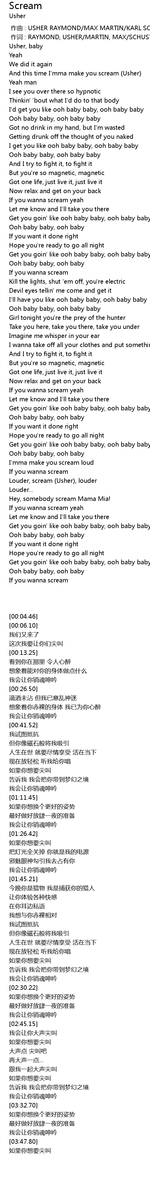 | [00:09.79] | And this time I' mma make you scream Usher |