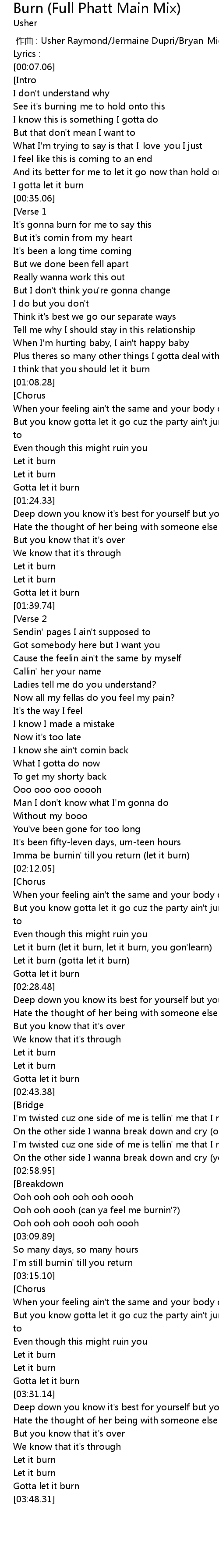 | [02:09.55] | Imma be burnin' till you return let it burn |