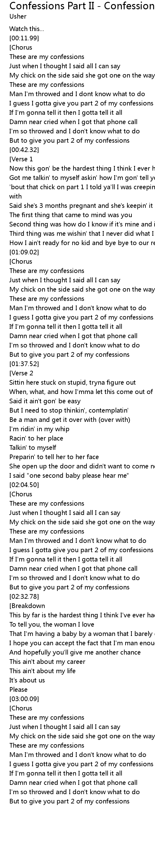I guess I gotta give you part 2 of my confessions |
