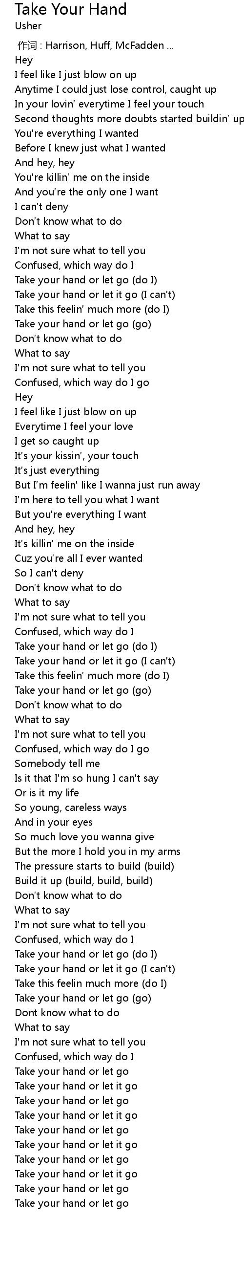 | [00:45.41] | Take your hand or let go (go) |