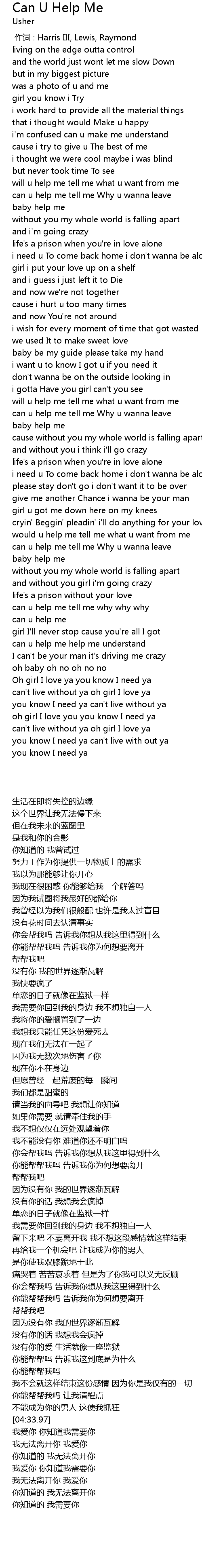 | [03:41.83] | can u help me tell me Why u wanna leave |