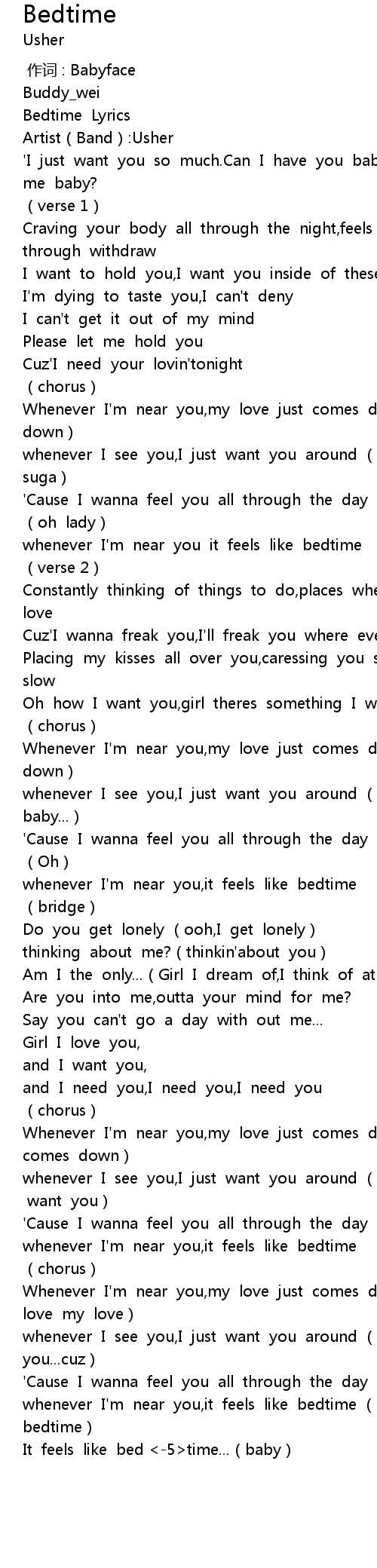 Bedtime Lyrics