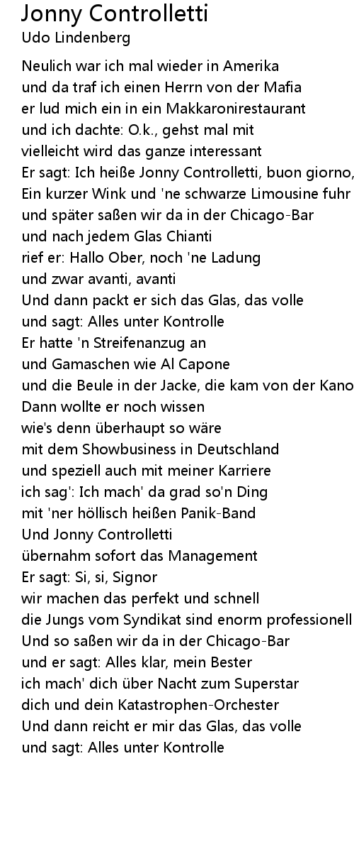 | Er sagt: Ich hei e Jonny Controlletti, buon giorno, Signor | |
