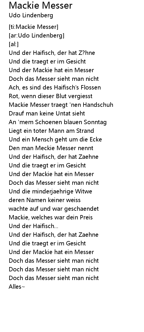 Und der Mackie hat ein Messer |