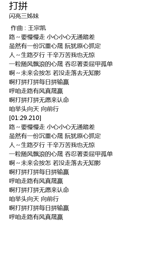 | [02:55.180] | 啊打拼打拼每日拼输赢 |