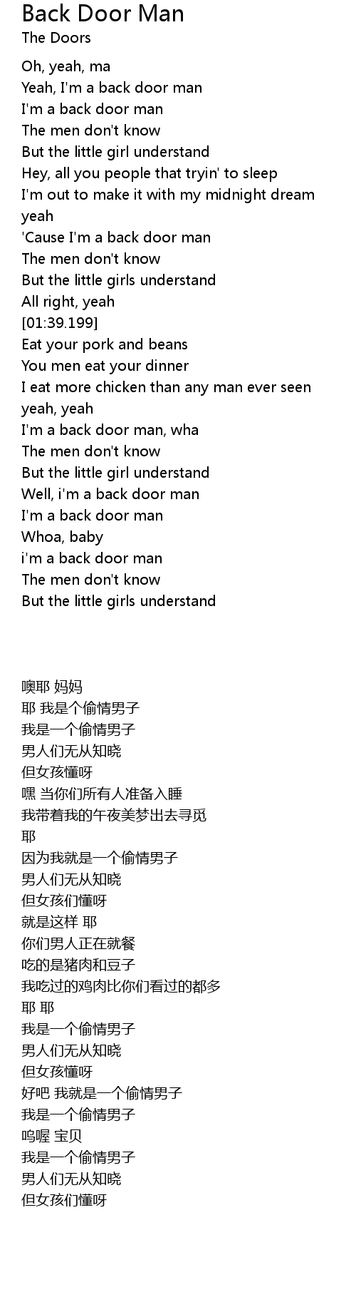 | [00:38.389] | Yeah, I'm a back door man |
