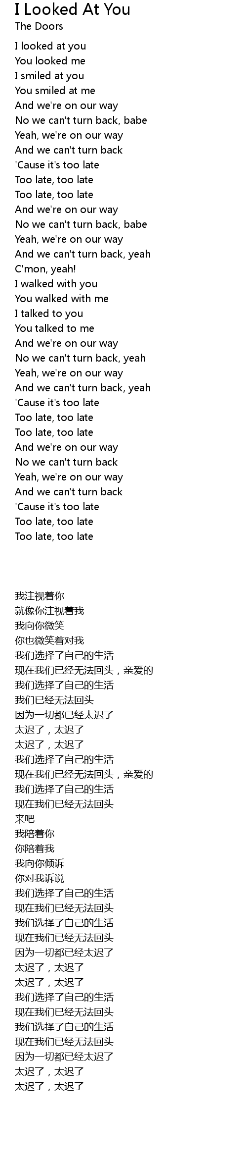 | [01:40.500] | ' Cause it' s too late |