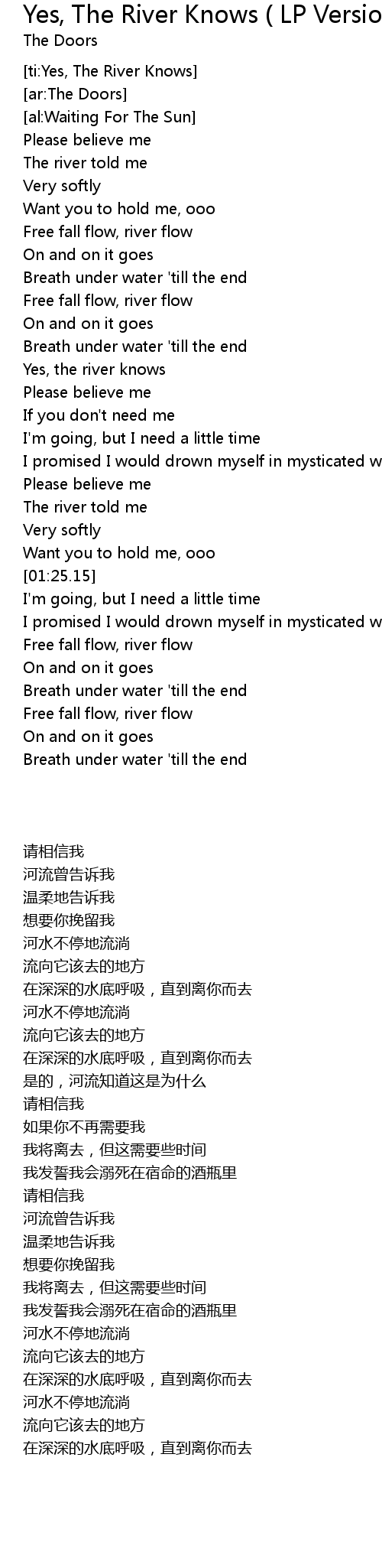 [ti:Yes, The River Knows] |