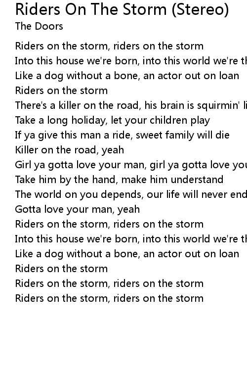 Riders on the storm, riders on the storm |