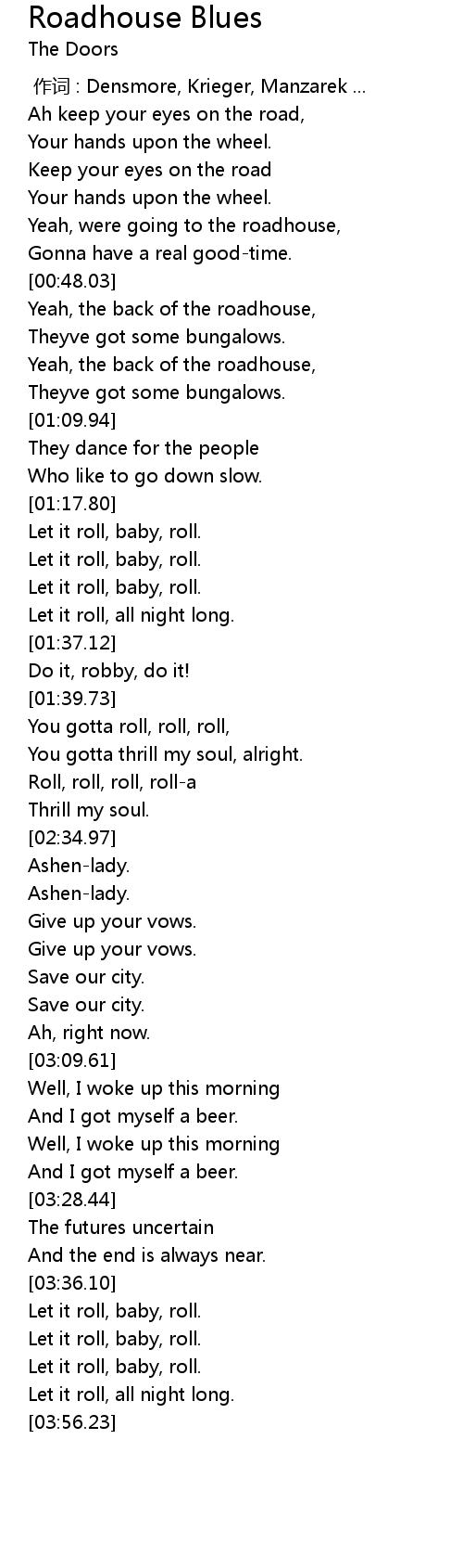 | [00:00.00] | 作词 : Densmore, Krieger, Manzarek ... |