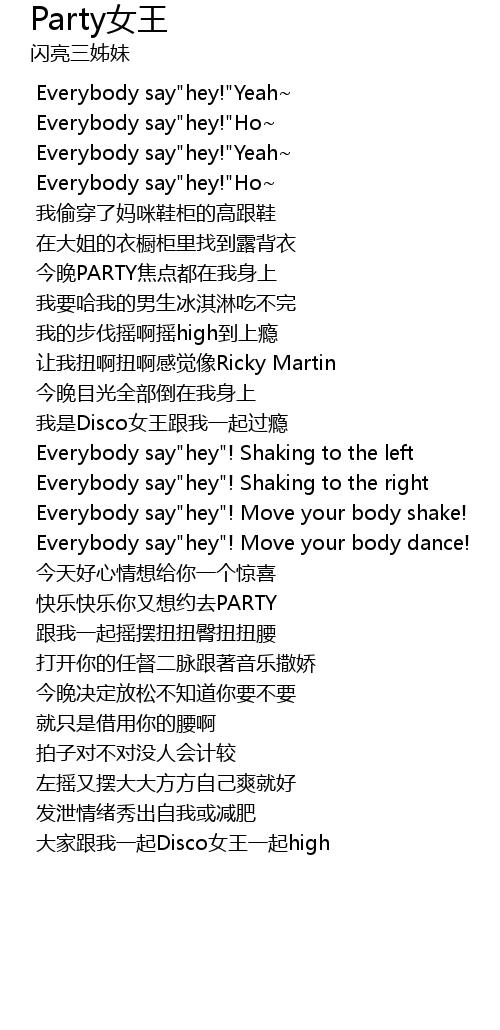 | dà jiā gēn wǒ yì qǐ Disco nǚ wáng yì qǐ high |