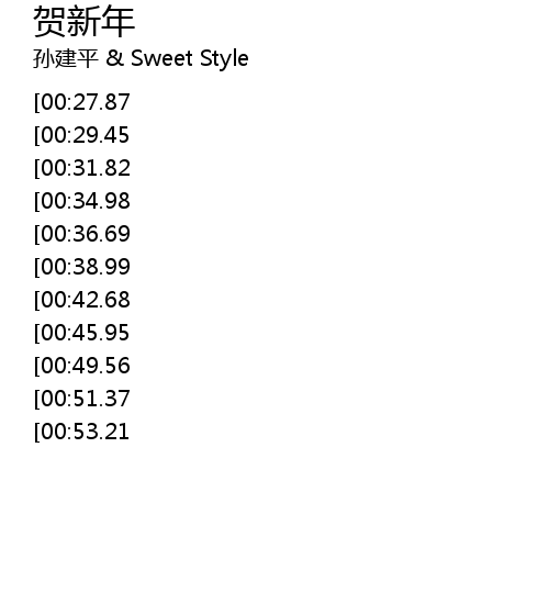 | [01:12.14][00:27.87] | 贺新年 祝新年 |