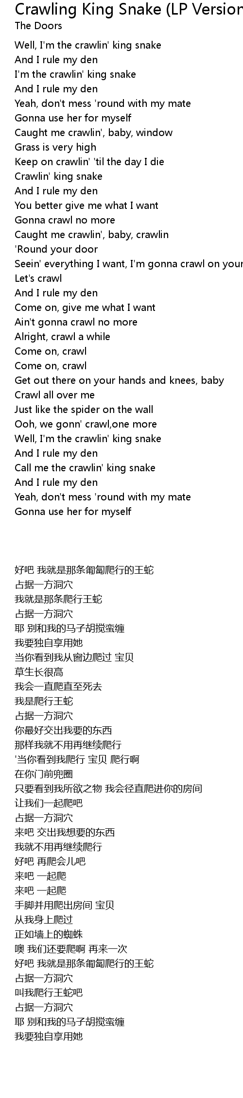 Well, I'm the crawlin' king snake |