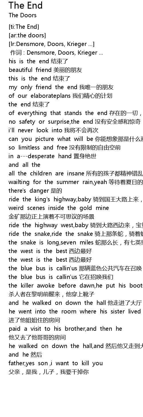 | [00:00.00] | 作词 : Densmore, Doors, Krieger ... |