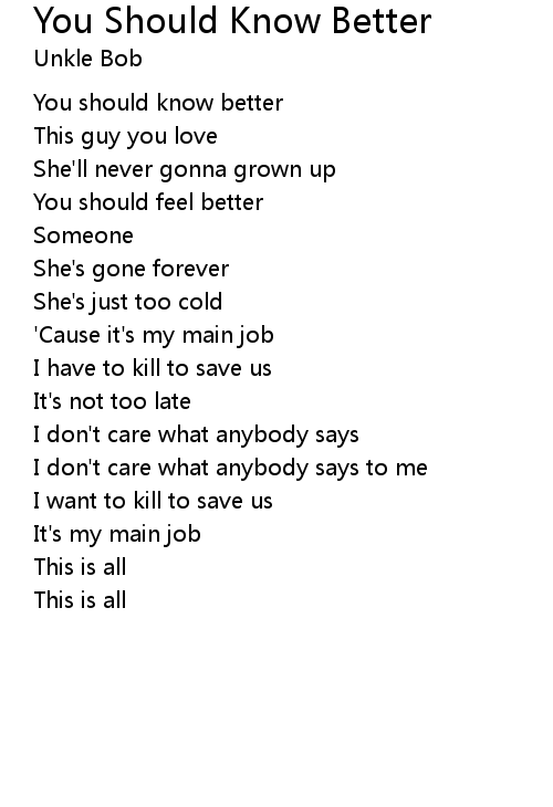 | Song | You Should Know Better |