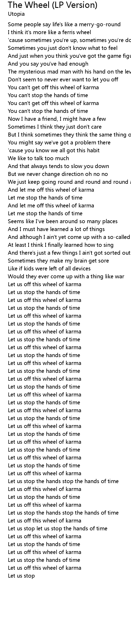 | [01:20.64] | You can't get off this wheel of karma |