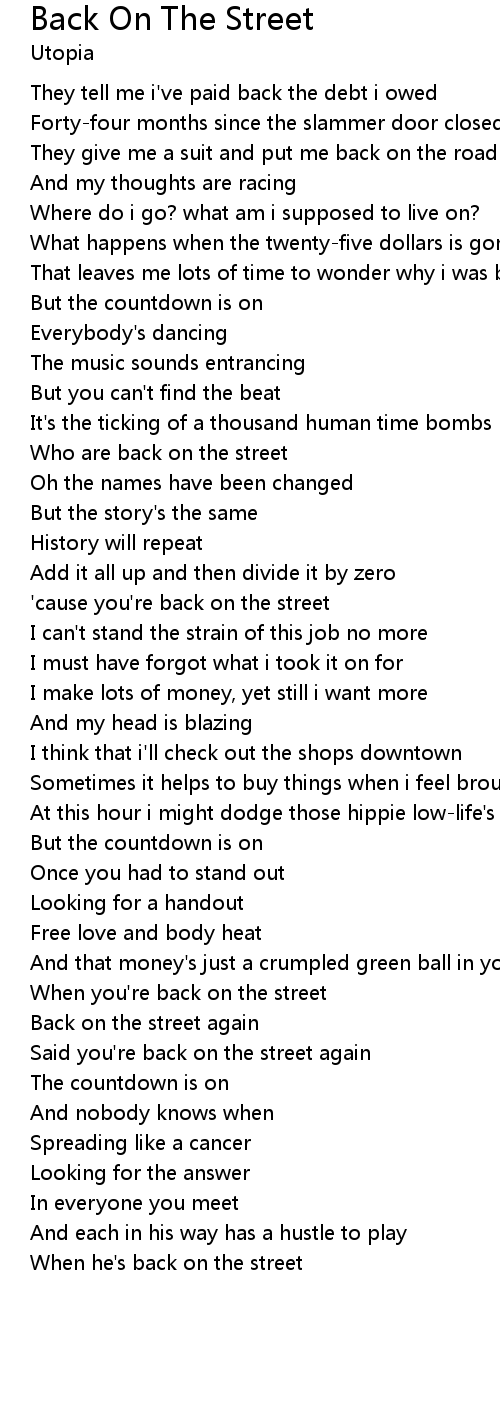 'cause you're back on the street |