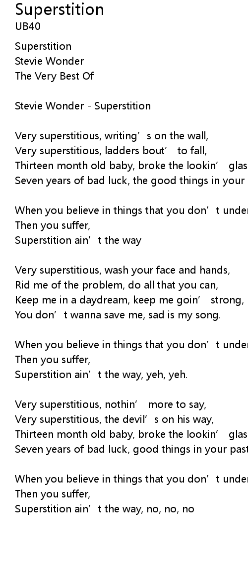 | Superstition ain’t the way, yeh, yeh. | |