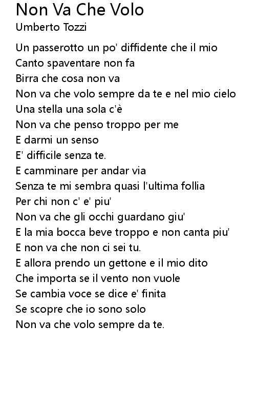 | Song | Non Va Che Volo |