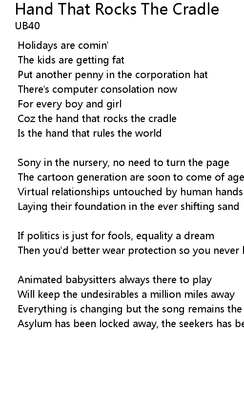 | Coz the hand that rocks the cradle | |