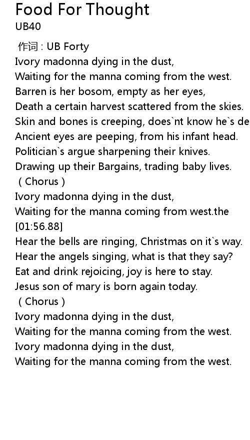 | Song | Food For Thought |
