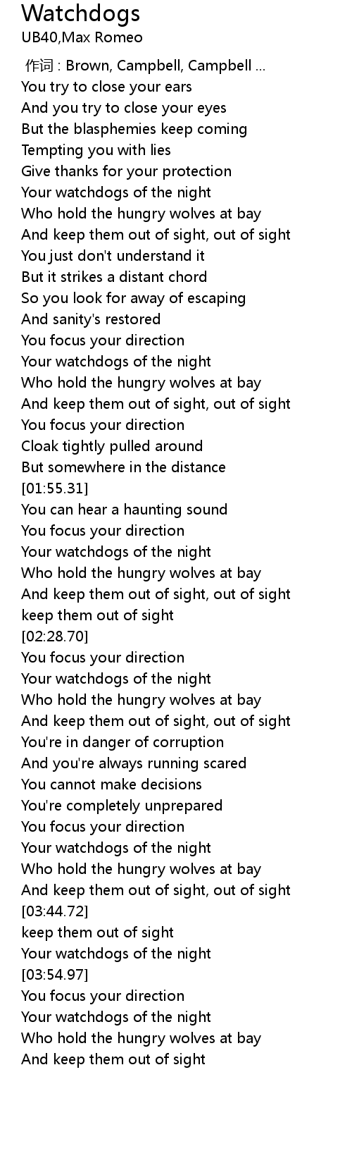 | [03:51.40] | Your watchdogs of the night |