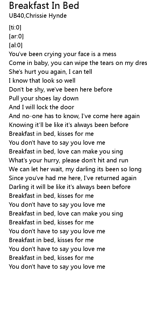 | [02:36.710] | Breakfast in bed, kisses for me |