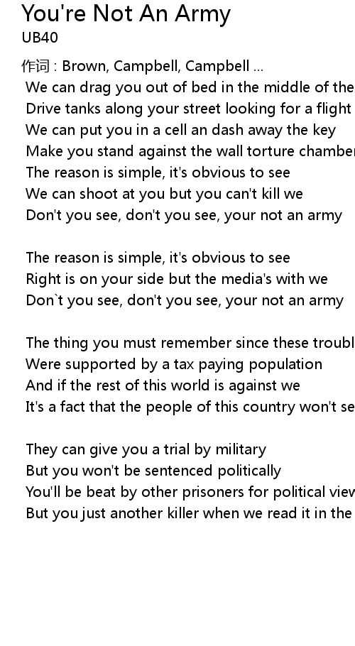 | Song | You're Not An Army |