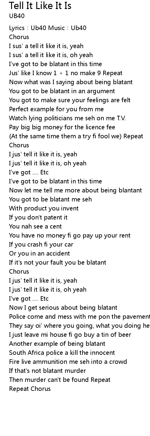 | I sus' a tell it like it is, oh yeah | |