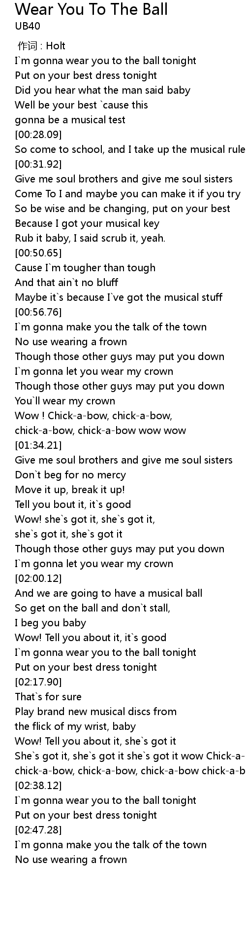 | [02:39.93] | I`m gonna wear you to the ball tonight |