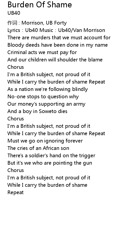 | While I carry the burden of shame Repeat | |