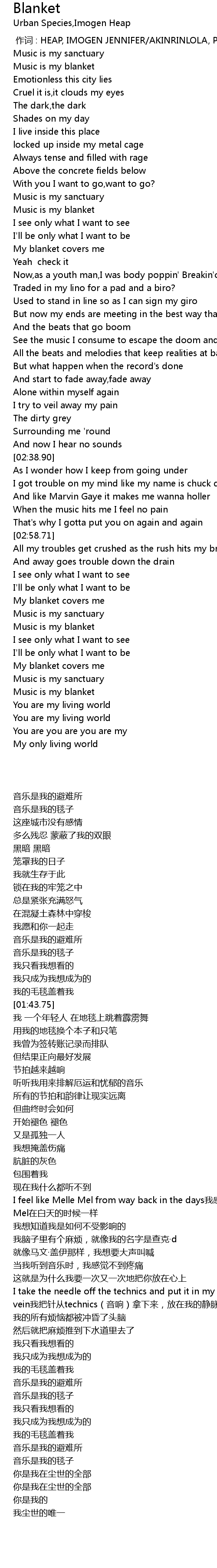 | [03:30.35] | Music is my blanket |