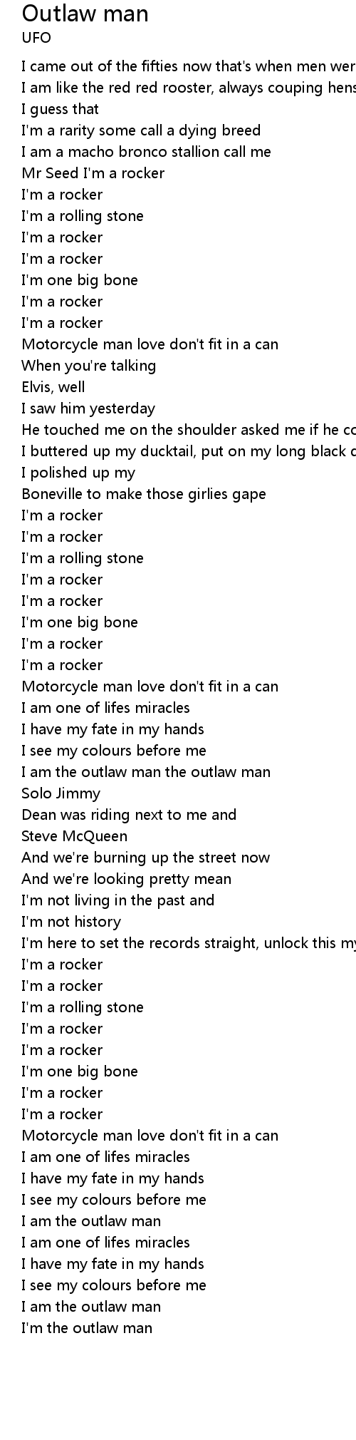 | I am the outlaw man the outlaw man | |