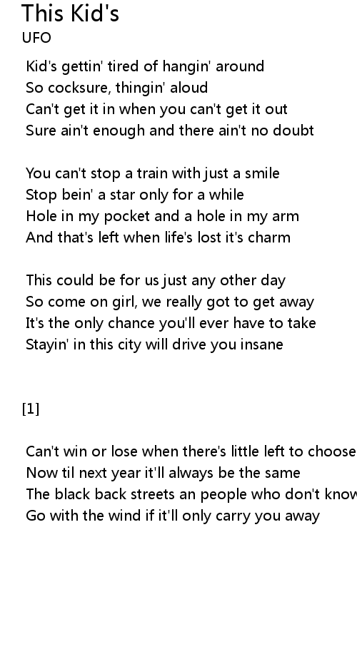 Kid's gettin' tired of hangin' around |