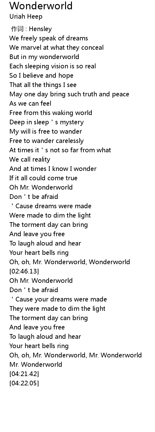| [03:54.61] | Oh, oh, Mr. Wonderworld, Mr. Wonderworld |
