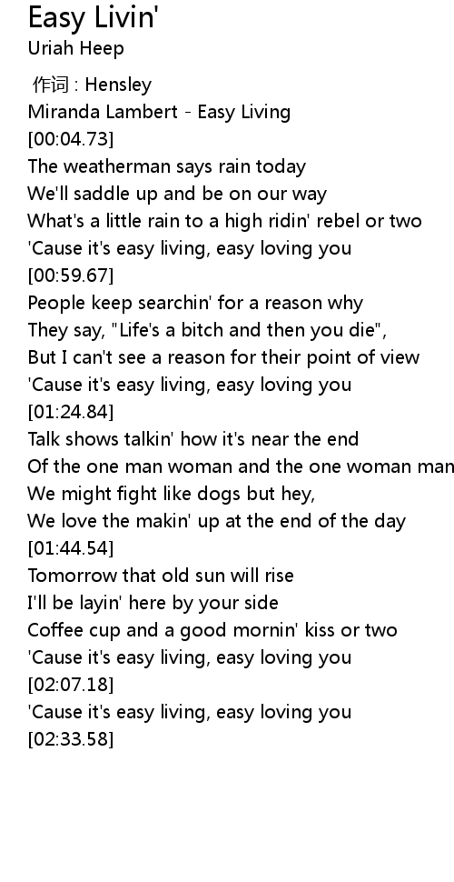 | [02:01.02] | ' Cause it' s easy living, easy loving you |