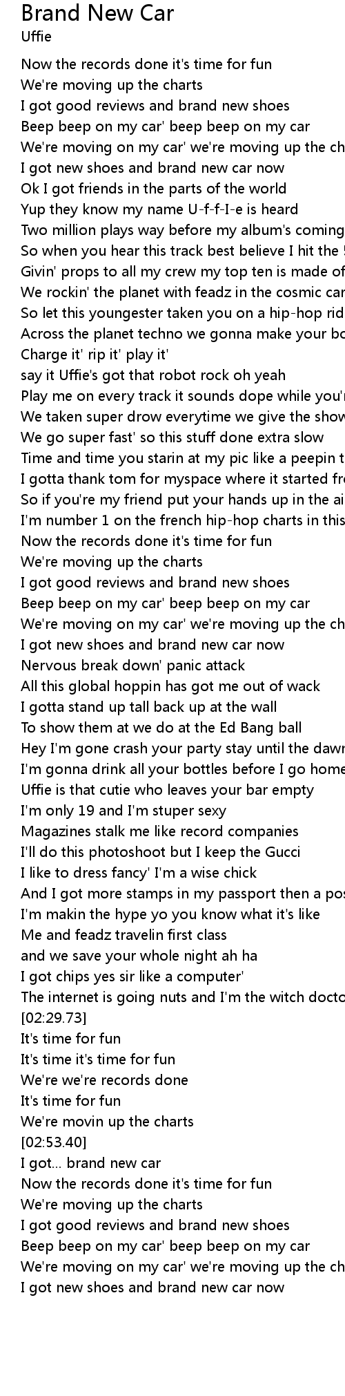 I got... brand new car |
