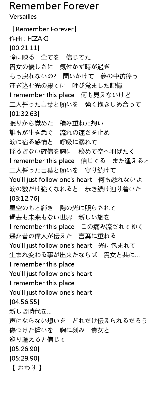| [00:01.11] | 「Remember Forever」 |