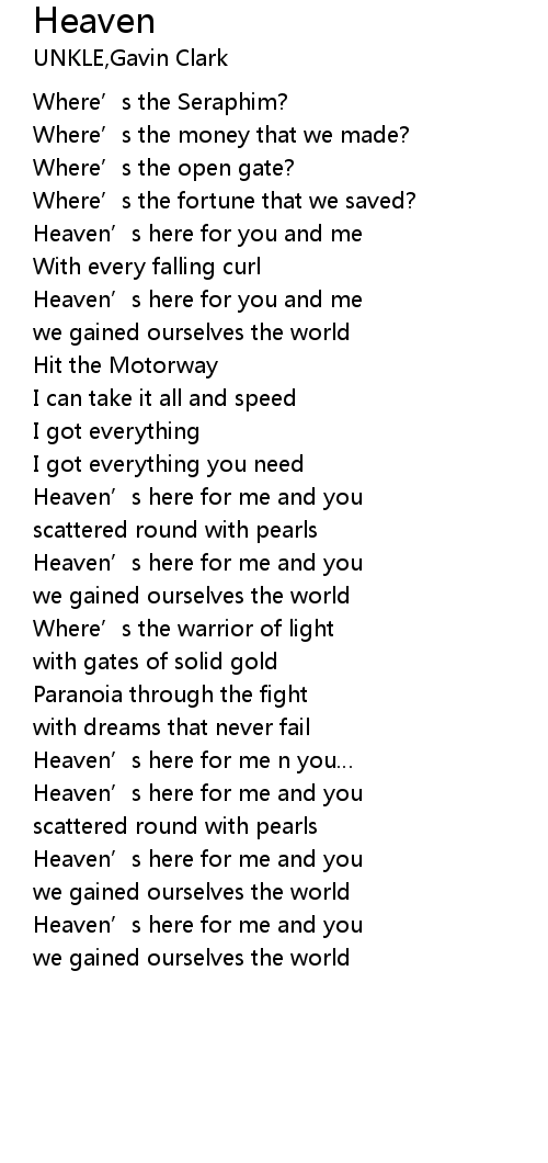 | Heaven' s here for you and me | |