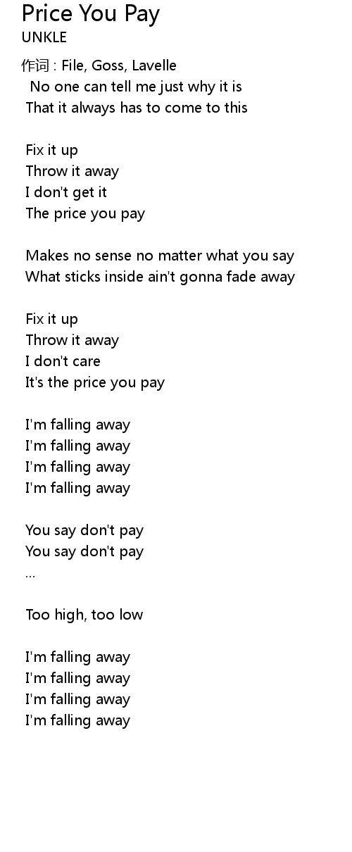 | Song | Price You Pay |