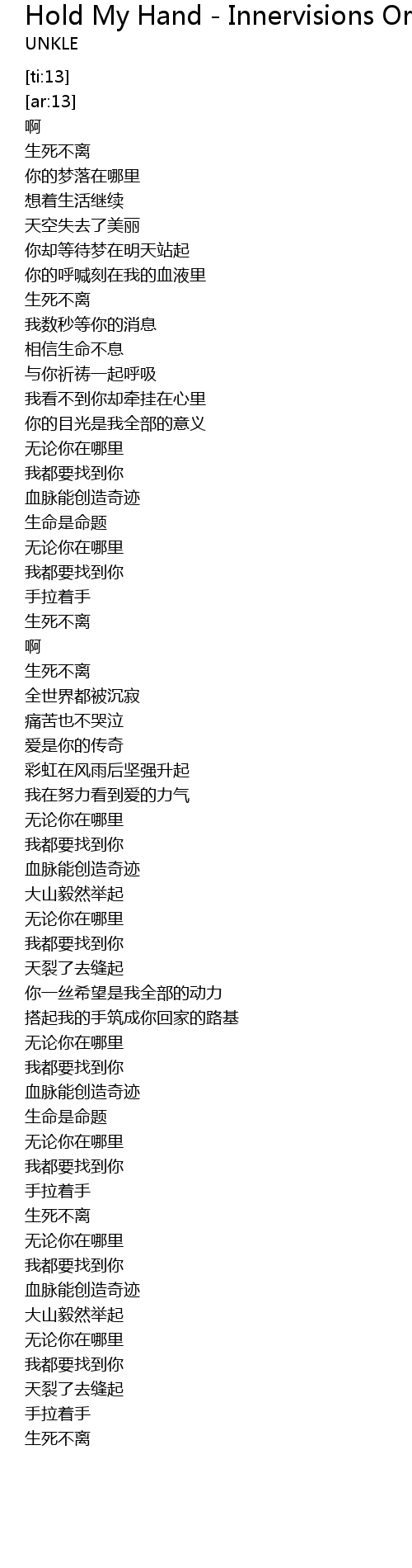 | [01:41.310] | 手拉着手 |
