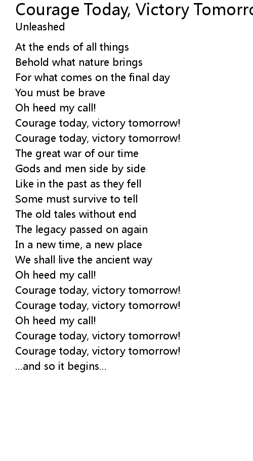 Courage today, victory tomorrow! |