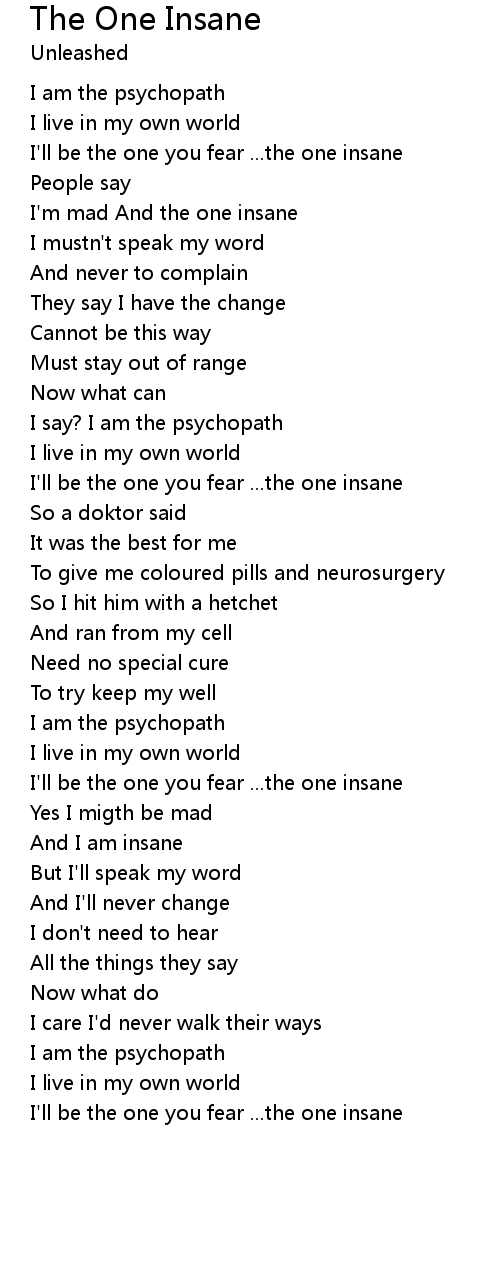 I'll be the one you fear ...the one insane |