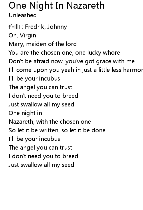 | Song | One Night In Nazareth |
