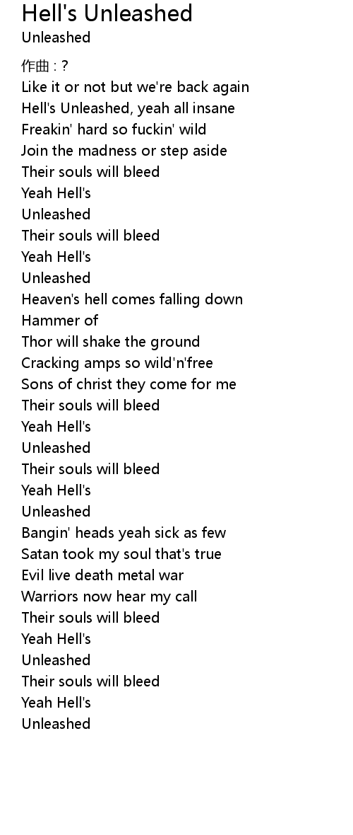 | Hell' s Unleashed, yeah all insane | |