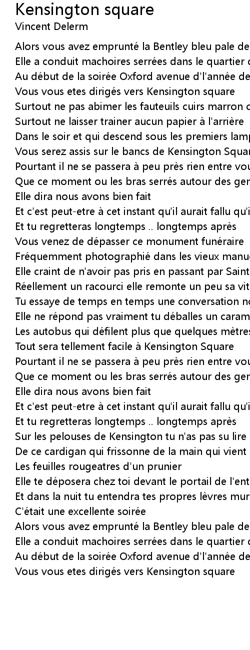 | Sur les pelouses de Kensington tu n' as pas su lire mes pensee s | |